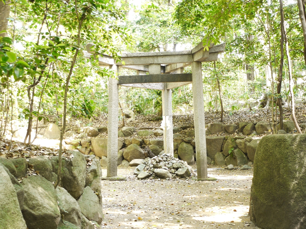 有名な 三柱鳥居(みはしらとりい)をみました。現存の石製は江戸末に再興されたものとのこと。