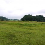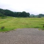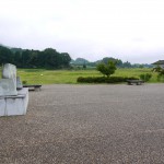 山の斜面に農地に囲まれて、駐車場の空き地と遺構らしき区画割りが見て取れます。説明版以外めぼしいシンボルはありません。発掘された一部の回廊が飛鳥資料館に復元されています。