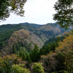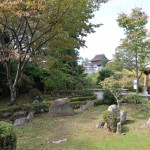 庭から、北西方向の山の方に金峯山寺が見えます。