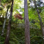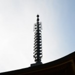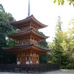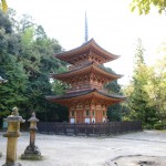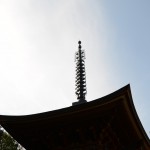 以前おとずれた時は三重の塔は修理中でシートが掛かっていましたが、今回は健全な姿をながめる事が出来ました。打ちっ放しの音が聞こえたので、下を眺めると、ゴルフ練習場があります。