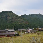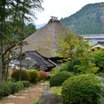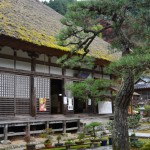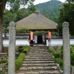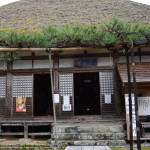 寺域は小さく本堂の屋根は茅葺きでした。寺の前は田園風景、後ろは山です。隣に神社があります。