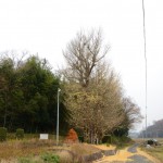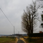 県道のその辺りの道から西側を見ると、既に、イチョウが見えます。