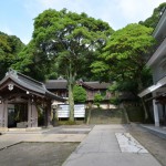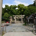 海沿いに駐車場があり、歩いて数分で、神社に行けます。背後は山です。境内は別世界に感じます。