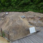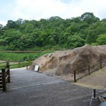 工事中に、偶然の発見で千数百年振りに世に出ました。重機ですくった発見時の状態が再現されています。いわゆる里山にあります。道が無ければ誰も分け入らないだろう山の中腹にあります。