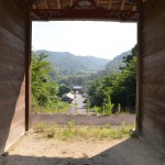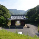 道路から参道に入るとすぐお寺の門があります。その真後ろの南西の丘の上に、仁王門が離れてあります。そこまで車で行けます。その背後が池です。盛時の頃は池では無かったような地形です。