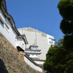 姫路城 天空の白鷺 公開済み 2013 年 7 月 11 日姫路城は工事中です。天守閣を素屋根がスッポリ被っています。エレベーターで最上階8階まで登りガラス越しに天主の5重屋根が見渡せます。 階段を下り7階で5層壁と4重屋根が目前に見えます。 見学したら7階からエレベーターで下ります。 まあ其れだけです。