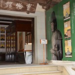 金刀比羅宮 十一面観音 公開済み 2014 年 4 月 20 日香川県仲多度郡琴平町(その他)−1083−1宝物館8時半~16時半十一面観音立像 145.5cm ヒノキ材 彫眼 天冠台上の化仏は失われている 唇朱 瓔珞 腕釧 臂釧は銀泥と彩色で表す 平安後期 重文民間駐車場 500円で車を置いて、徒歩にて坂道を上り宝物館へ到着、ガラスで覆われて安置されています。周囲から良く拝観出来ます。ガラスが年代物で、厚さが一様でなく、見え方に微妙な変化があります。[