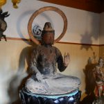 武道天神社(旧:真光寺) 守山市 聖観音坐像 2016年9月25日 公開済み 2016 年 9 月 25 日 武道天神社(旧:真光寺) 守山市 聖観音坐像 2016年9月25日 → 滋賀県守山市矢島町1222 聖観音坐像 92cm カヤ一木 背刳り 重文 1029-1038年 武道天神社(旧:真光寺)昭和40年の修理によって、像の背中の内側から銘が発見された。漆や金箔をおとし、ほぼ平安時代の姿にもどした。神社の敷地の隅に収蔵庫があり安置されています。世話役の方に案内していただきました。庫内に入り近くから拝観出来ました。 撮影許可。周辺に蚊飛ぶ。