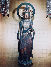 この像の制作年代は本院の創建、天正14年(1586)よりはるかに遡り、伝来の過程は不明である。境内に別に堂を設けてまつっていることから、周辺にあった古堂にまつられていた像を、客仏としてまつってきたのかもしれない。(大阪市の文化財より)