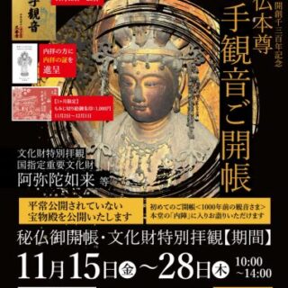 2024年11月15日~11月28日秘仏本尊千手観音ご開帳・文化財特別拝観 駐車場有り